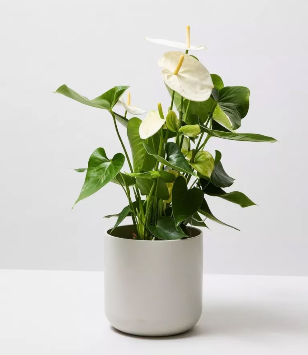 The Peace Lily plant is a stunning indoor flowering plant with dark, glossy green leaves and occasional pearly white flowers that put any competitors to shame. Known to be one of the best air-purifying plants, the Peace Lily is a wonderful indoor companion with a fuss-free attitude and low maintenance requirements. It is also fairly fast-growing, making it the perfect lush plant for indoor displays.